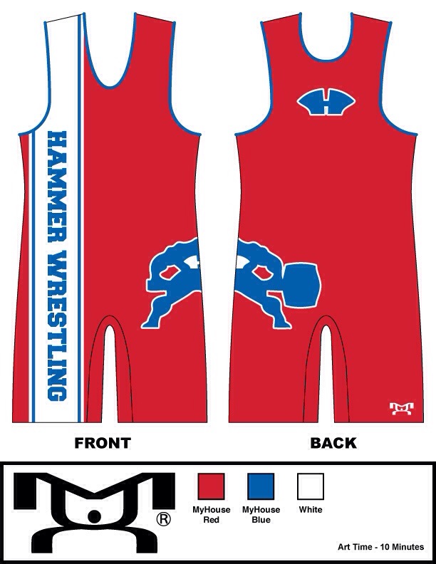 We will be getting new freestyle/greco singlets in soon. We are hoping that they will be here in three weeks at the most. Cross your fingers. We decided to go with a little more traditional style this time but we think they are sweet! Please begin letting us know if you’re interested in purchasing one or two and the size. See the design below.